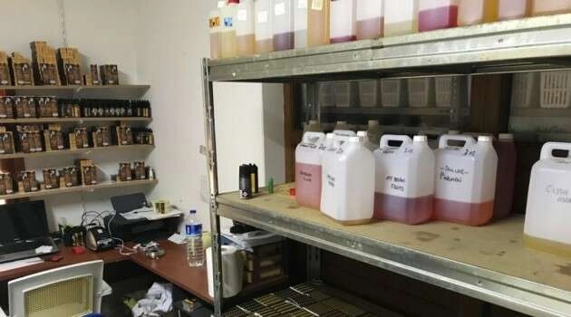 Antalya Cumhuriyet Başsavcılığı koordinesinde, Kaçakçılık ve Organize Suçlarla Mücadele Şube Müdürlüğü görevlilerince, il genelinde kaçak elektronik sigara ve elektronik sigara malzemeleri satan şahıs ve organizasyonlara yönelik operasyon gerçekleştirildi. Antalya’nın Kepez ilçesinde bir ikametin elektronik sigara likiti imalathanesi olarak kullanıldığı tespit edildi. Yapılan aramada, 11 bin 651 adet 531 litre elektronik sigara likiti, bin 489 adet elektronik sigara likit aroması, 149 litre elektronik sigara likit yapımında kullanılan aroma, 860 litre sigara likit yapımında kullanılan gliserin, 57 bin 600 adet elektronik sigara likiti şişe etiketler, 27 bin 335 adet likit boş şişesi ve kapağı, bin 597 adet farklı ebatlarda elektronik sigara likiti boş şişesi, 3 bin 450 adet likit şişesi karton ambalaj kutusu, 620 adet elektronik sigara cihazı parçaları, 8 adet elektronik sigara cihazı, 3 adet hassas terazi, bir adet likit karıştırmaya yarayan elektrikli kazan, bir adet huni, bir adet cam sıvı ölçme beheri, bir adet şişe etiketlemeye yarayan cihaz ele geçirildi.
