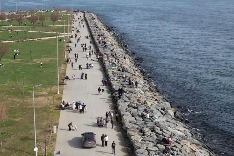 İstanbul'da geçtiğimiz haftalarda etkili olan soğuk hava dalgasının ardından, bugün termometreler 19 dereceyi gösterdi. Güneşli havayı fırsat bilen vatandaşlar Avcılar sahiline koştu. Sahilde yaşanan kalabalık ise dron ile görüntülendi.