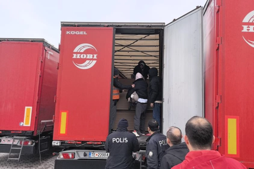 Olay, saat 09.30 sıralarında Bursa-Ankara karayolu İnegöl girişindeki tır parkında meydana geldi. Tırları denetleyen gümrük memuru, 2 tırın dorsesinde yüklü suntaların üzerinde ayak izleri olduğunu fark edince polise haber verdi. Olay yerine gelen polis ekipleri, şüpheli olan 2 tırı didik didik aradı. Aramalarda TE 2200AI plakalı tırın dorsesinde suntaların içine saklanan 3 kaçak göçmen yakalandı. İran uyruklu 1'i kadın 3 kişi gözaltına alındı. Göçmenlerin tırın dorsesinde Makedonya'ya gitmeyi planladıkları öğrenilirken, ekipler gelmeden kısa süre önce başka bir tırın dorsesinden çıkan 3 diğer kaçak göçmenin yaya olarak kaçtıkları belirlendi. Polis ekipleri kaçan 3 şahsı arıyor.