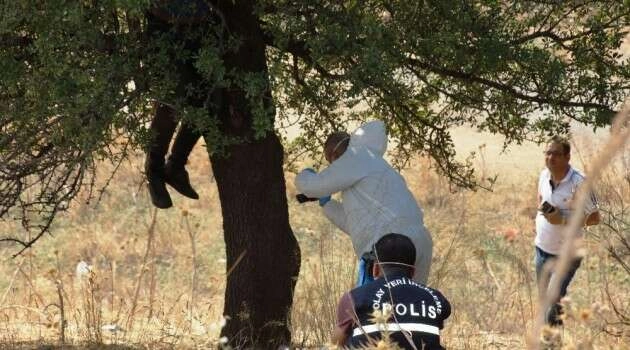 Aydın’ın Efeler ilçesinde boş bir arazide ağaca asılı halde bir erkek cesedi bulundu.