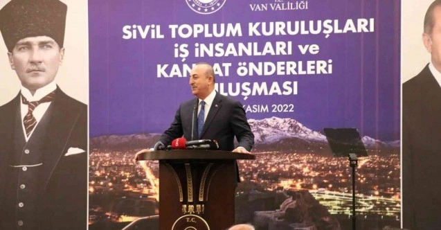 Van’da “Girişimci ve İnsani Türk Dış Politikası Buluşması”nın ardından Doubletree by Hilton Otel’de yapılan “STK’lar, İş İnsanları ve Kanaat Önderleri ile Buluşma” programına katılan Bakan Çavuşoğlu, Van’da bulunmaktan büyük mutluluk duyduğunu belirterek, “Bu aslında ilk gelişim. Biraz ayıp oldu. İnşallah son gelişimiz olmayacak. Yaz başından bu yana il başkanımızla beraber planlamalar yaptık, ama her seferinde aksilikler çıktı ve gelemedik. Kısmet bugüneymiş. Dün Merkez Karar Yürütme Kurulu toplantısındaydık. Oradan Kazakistan’a geçtik. Cumhurbaşkanımıza da bilgi vermiştik. Cumhurbaşkanımızın sizlere selam ve sevgilerini getirdim. Bugün gençlerimizle buluştuk. Üniversitede gençlerimizle insani ve dış politikamızı konuştuk. Onların sorularından ve görüşlerinden de faydalandık, eleştirel sorular da sordular. Ondan da ayrıca memnun olduk. Bugün kısaca sizlerle dış politikamızın özelliklerini görüşeceğiz. Sizlerin de bazı beklentilerini biliyoruz. Bilmediğim çok şey vardır, onları da sizden duymak isteriz” dedi.