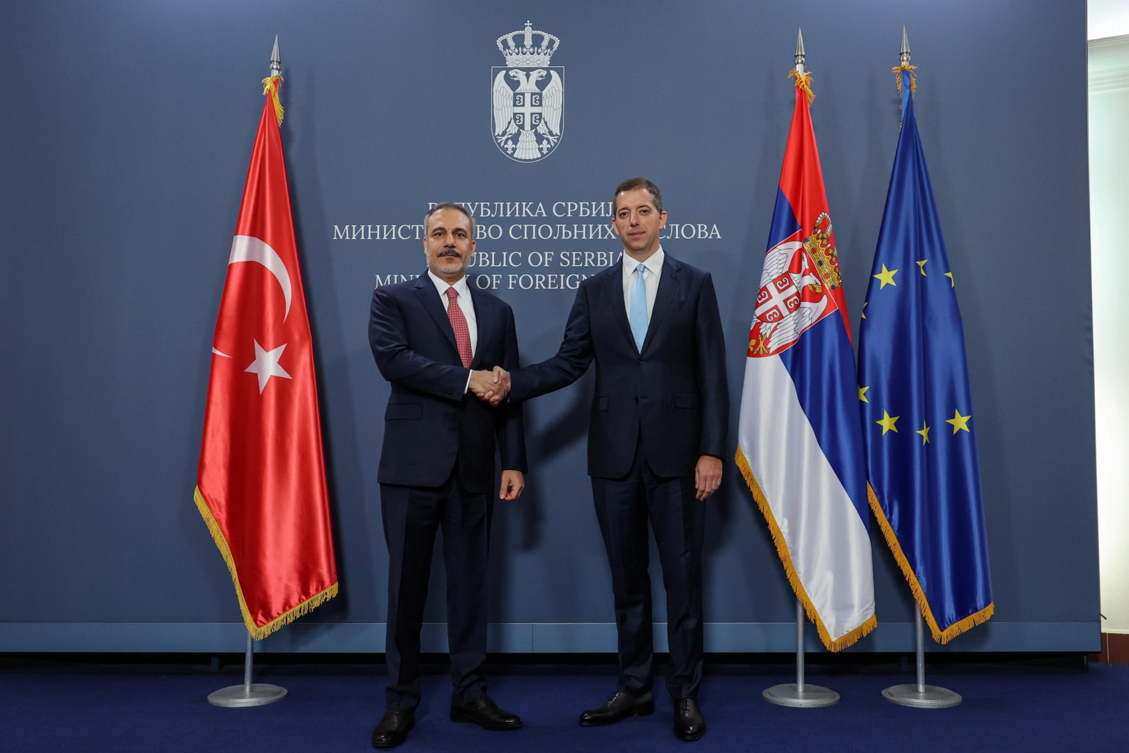 Dışişleri Bakanı Hakan Fidan, Sırbistan temaslarını sürdürüyor. Bakan Fidan, Belgrad temasları kapsamında Sırbistan Dışişleri Bakanı Marko Duriç ile bir araya geldi. Bakan Fidan ve Duriç, baş başa görüşmenin ardından heyetlerarası görüşme gerçekleştirildi. Görüşmede, Türkiye ile Sırbistan arasındaki çok boyutlu iş birliği, Türkiye'nin Balkanlar'da barış ve istikrarın muhafaza edilmesi, Bosna-Hersek'teki durum, bölgesel konular ele alındı. Bakan Fidan, 2024 tarihinde Sırbistan'a gerçekleştirdiği ziyaretinde Marko Duriç'le bir araya gelmişti. Duriç ise, 11-13 Nisan 2025 tarihlerinde düzenlenen Antalya Diplomasi Forumu'na katılmıştı.