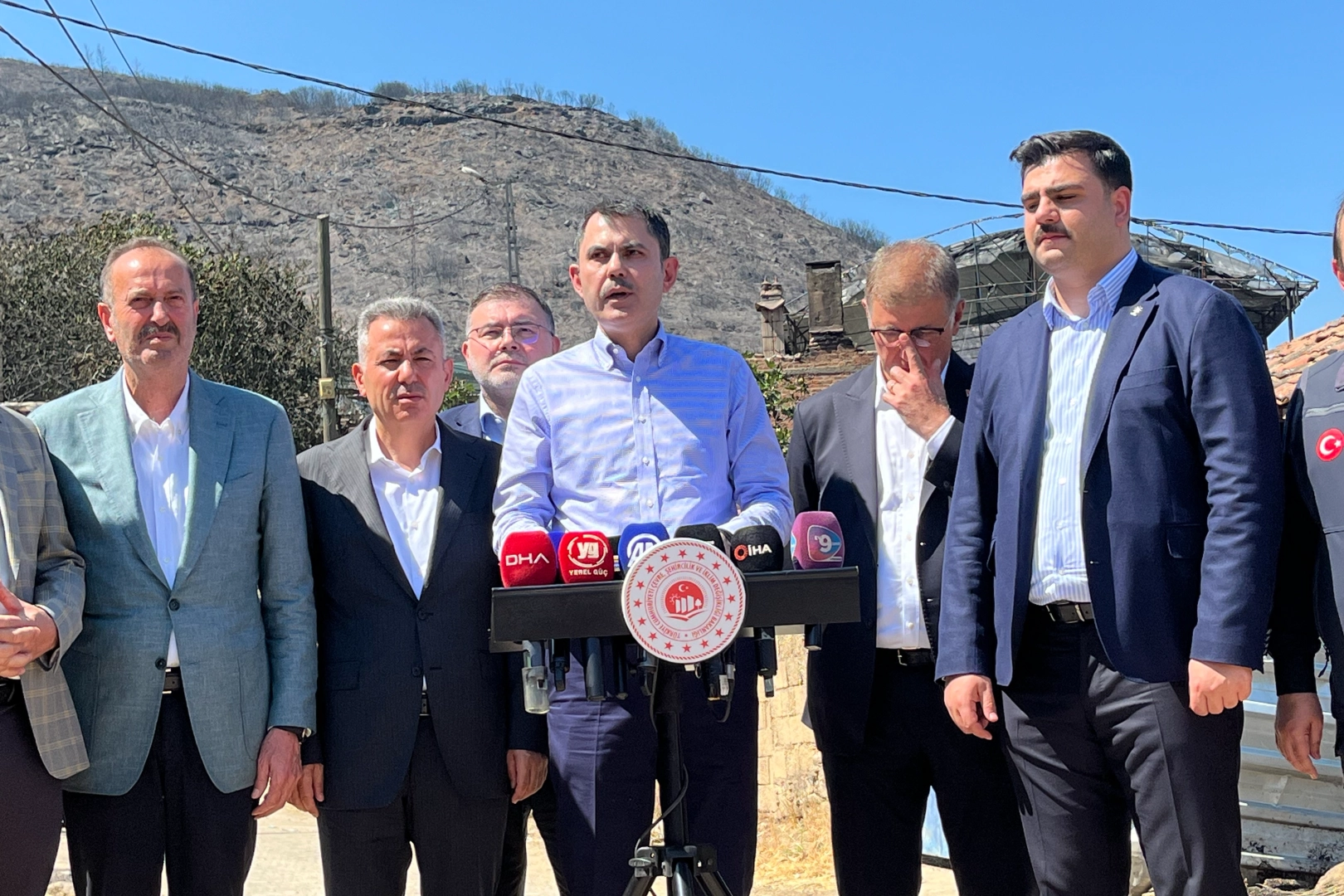 Toplantı sonrası Karaduman Mahallesine gelen Bakan Kurum, burada mahallede incelemelerde bulunup vatandaşla bulunduktan sonra basın açıklaması gerçekleştirdi. Açıklamada konuşan Bakan Kurum, orman yangınında hayatını kaybeden iki vatandaş için başsağlığı dileyerek, "Canı pahasına çalışan tüm orman kahramanlarımızın Allah yardımcısı olsun" dedi. Kurum, Cumhurbaşkanı Recep Tayyip Erdoğan'ın geçmiş olsun dileklerini de İzmir halkına iletti. Bakan Kurum, "Yangınlardan etkilenen vatandaşlarımızın hesaplarına şu ana kadar yaklaşık 16 milyon lira yatırıldı. Kira yardımı, taşınma yardımı ve eşya zararları karşılandı" dedi. Ayrıca AFAD tarafından 30 milyon lira ödenek gönderildiği, ihtiyaç halinde bu rakamın artırılacağı ifade edildi.