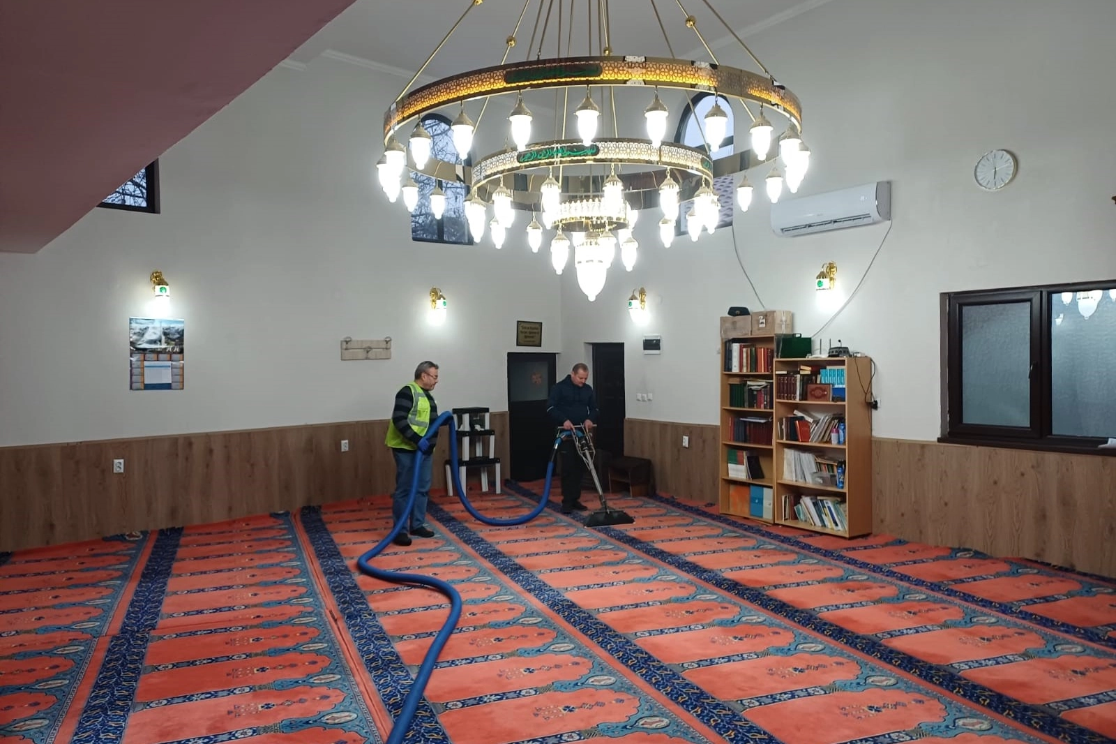 Camilerin iç mekanlarını büyük bir özenle temizleyen ekipler, halıları da hijyen kurallarına uygun şekilde dezenfekte etti. Cami içerisindeki ortak kullanım alanlarını da titizlikle temizleyen ekipler, hoş kokularla ortamın ferahlatılmasını ve ibadete hazır hale getirilmesini sağladı.
