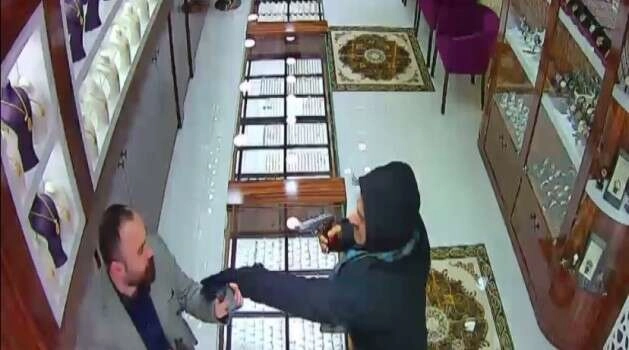 Soygun, Bahçeşehir’de bulunan bir kuyumcuda meydana gelmişti. Soygun olayında, müşteriye gibi içeriye giren plastik makyajlı bir soyguncu ilk önce döviz bozduracağını söyledi. Etrafı kontrol eden şüpheli daha sonra dışarıda bekleyen 2 arkadaşından birisine işaret etti. İçeriye giren soygunculardan maskeli olanla birlikte tezgahtarı yere yatırıp kelepçeleyen şüpheliler dakikalar içinde yanlarında getirdikleri çantaya altınları atıp kaçmaya kalktılar. Yaşanan anları uzaktan kamera sistemi ile izleyen dükkan sahibi ruhsatlı silahı ile iş yerine geldi. Bir süre sonra dükkandan çıkan soyguncuların ardından art arda ateş etti. Kuyumcular çantayı bırakıp kaçarken yaşanan anlar güvenlik kamerasına yansıdı.