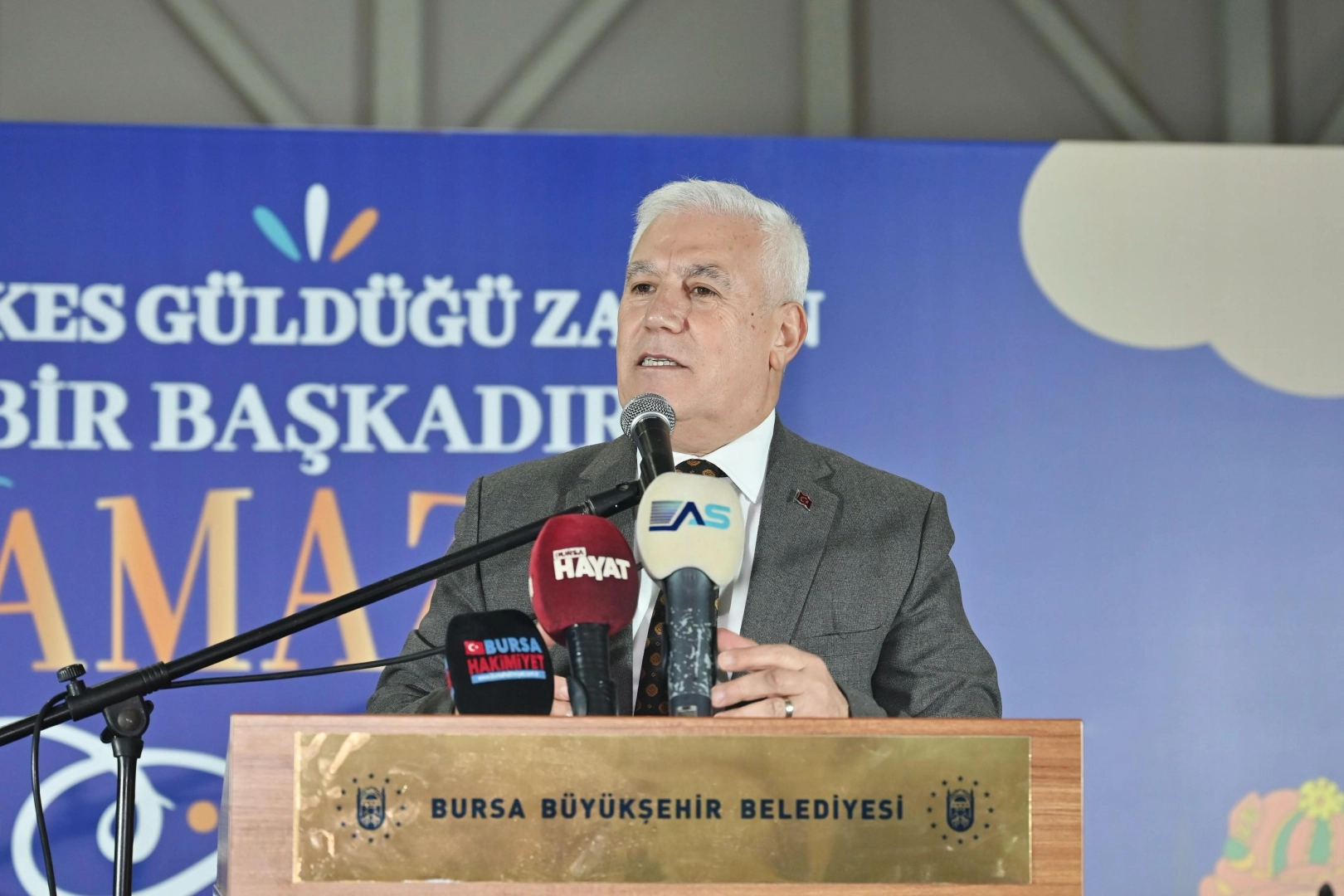 Ramazan’ın manevi iklimini çeşitli programlarla yaşatan Bursa Büyükşehir Belediyesi tarafından Fevzi Çakmak Katlı Otoparkı, Emirsultan Meydanı ve İnegöl İshak Paşa Meydanı Açık Otoparkı’nda her gün binlerce kişiye iftar veriliyor. Bursa Büyükşehir Belediye Başkanı Mustafa Bozbey ve eşi Seden Bozbey de yaklaşık 2000 kişinin katıldığı Yıldırım ilçesi Millet Mahallesi’ndeki iftar programında vatandaşlarla aynı sofrada buluştu. CHP İl Başkanı Nihat Yeşiltaş’ın da yer aldığı programda, vatandaşlar akşam ezanıyla birlikte oruçlarını açtı.İftar sonrası konuşan Büyükşehir Belediye Başkanı Mustafa Bozbey, her mahallede ve bölgede ihtiyaçlara göre çalışmalar yürüttüklerini söyledi. Daha temiz bir çevre ve daha iyi bir gelecek için mücadele ettiklerini belirten Başkan Bozbey, "Bursa’daki mahallelerin her geçen gün daha da güzelleşmesi en büyük arzumuz ve isteğimizdir. Kentsel dönüşüm konusunu önemsiyoruz. Özellikle hızlı ve sürdürülebilir bir anlayışla bütün kentin dirençli ve depreme dayanıklı yapılardan oluşması için çalışıyoruz. Çocuklarımızın ve gençlerimizin gelecek ile ilgili kaygılarını ortadan kaldırmak için önemli projelere imza atmaya devam edeceğiz. Onlara sahip çıkmak zorundayız. Kadınlar konusunda da farklı projelerimiz var. Herkesin gülümseyeceği bir Bursa oluşturuyoruz. Amacımız, niyetimiz ve anlayışımız bu. Dayanışmanın ve paylaşmanın ayı olan Ramazan ayı tekrar hayırlı olsun. Büyükşehir Belediyesi olarak her zaman vatandaşımızın yanındayız" dedi.Millet Mahallesi Muhtarı Metin Sezer de Ramazan’ın manevi atmosferinin hep birlikte yaşanmasını sağlayan Bursa Büyükşehir Belediye Başkanı Mustafa Bozbey’e teşekkür etti.