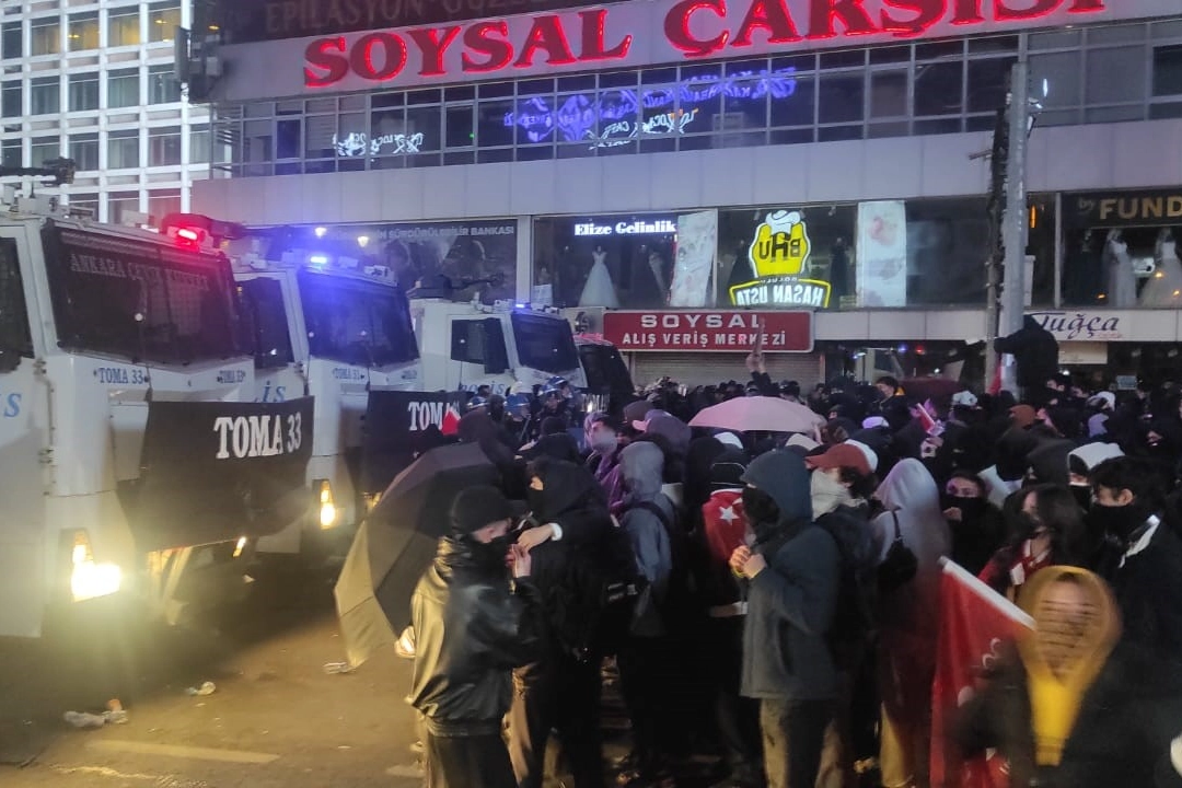 Ankara'da dün akşam saatlerinden itibaren 15 Temmuz Kızılay Milli İrade Meydanında toplanan kalabalık çeşitli sloganlar atarak İmamoğlu'nun tutuklanmasına tepki gösterdi. Meydana çıkan yolları trafiğe kapatan polis ekipleri, çevrede geniş güvenlik önlemleri aldı. Protestoya yüzleri kapalı şekilde katılan bazı eylemciler ise polis ekipleri tarafından müdahale esnasında gözaltına alındı.