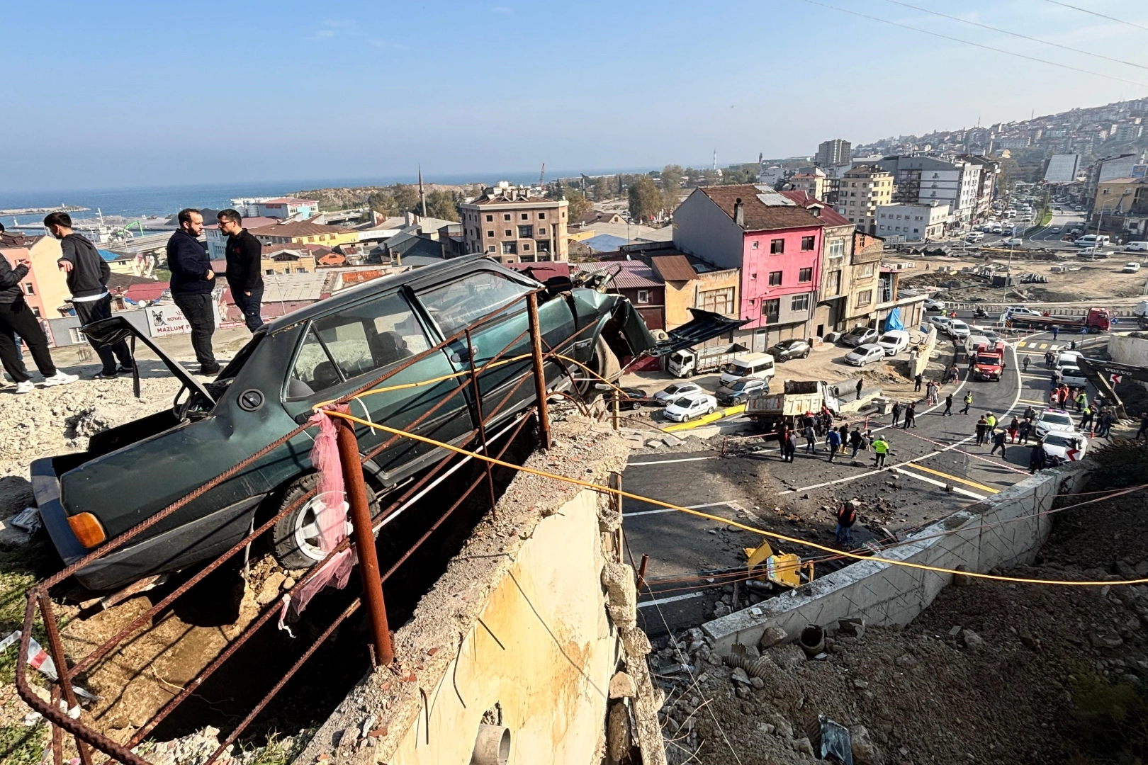 Kaza, Ortahisar ilçesi İncinur Sokak’taki yol yapım çalışmaları sırasında meydana geldi. Edinilen bilgiye göre, asfalt yüklemek için yokuş aşağı park edilen Ortahisar Belediyesi’ne ait kamyonetin freni boşaldı. Kontrolden çıkan kamyonet, park halindeki 3 araca çarptıktan sonra yaklaşık 20 metre yükseklikten Sezai Uzay Caddesi’ne düştü. Kazayı görenlerin ihbarı üzerine olay yerine polis, itfaiye ve sağlık ekipleri sevk edildi. Şans eseri olayda yaralanan olmazken, kamyonet ve çarptığı araçlarda maddi hasar meydana geldi. Kazayla ilgili soruşturma başlatıldı. "Büyük bir facia atlattık" Trabzon’un Ortahisar Belediye Başkanı Ahmet Kaya, yaşanan kazanın ardından kaza yerine gelerek incelemelerde bulundu. Kazayla ilgili belediye çalışanlarından bilgi alan Başkan Kaya, "Allah acıdı bize, Allah korudu başka izahı yok. Alt tarafta bir sürü insana bir şey olabilirdi, büyük bir facia atlattık. Verilmiş sadakamız varmış" dedi. "Şoför arkadaş nerede o sıra? Niye atlayıp arabayı durdurmadı?" Olayın ihmalkarlıktan kaynaklandığını belirten Kaya, "Şoför arkadaş nerede o sıra? Niye atlayıp arabayı durdurmadı? Araba yükleniyor, şoför arabada değil. Böyle bir şey olur mu? Burada canlar gidebilirdi. Böyle çalışma mı olur. Kaza ihmalden olur, akılsızlıktan olur" diyerek ekiplere tepki gösterdi.