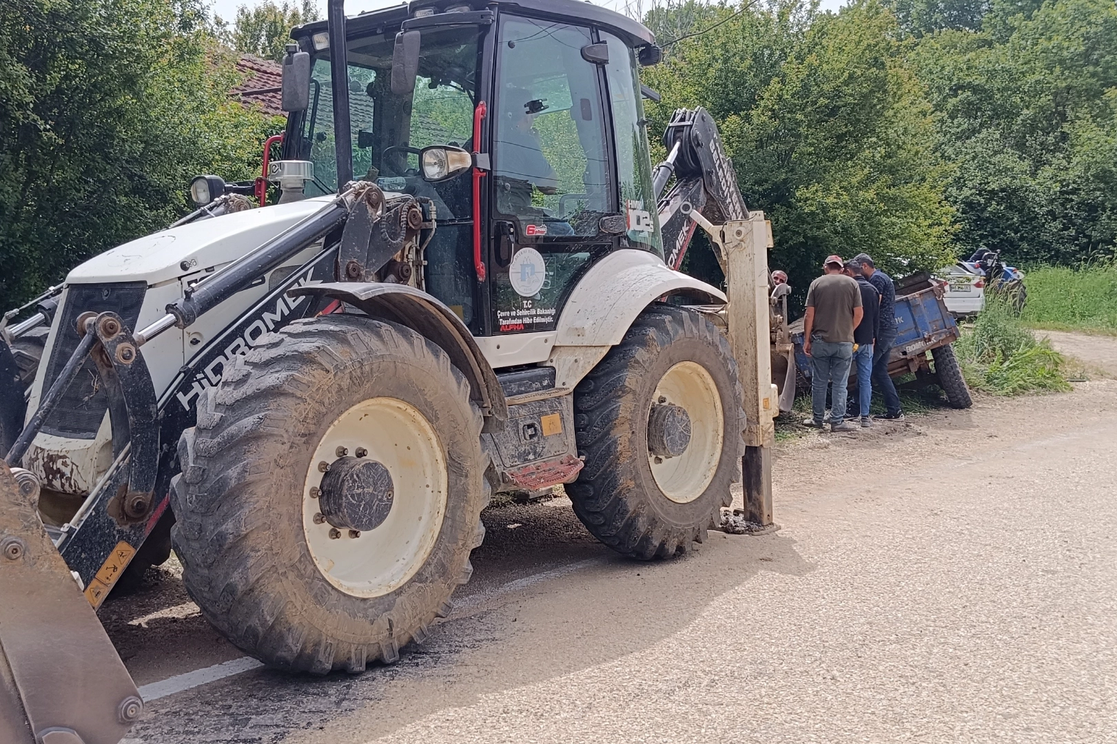 Alınan bilgilere göre; Bilecik'in Pazaryeri ilçesine bağlı Gümüşdere Köyünde seyir halindeki traktör sürücüsü A.E.'nin aniden önünde bir köpek çıktı. Köpeğe çarpmamak için manevra yapan sürücü bu esnada direksiyon hakimiyetini kaybetti. Kontrolden çıkan traktörün römorku su kanalına uçtu. Sürücü A.E., kazayı yara almadan atlatırken, yardımına Pazaryeri Belediyesi ekipleri yetişti. Belediye bünyesindeki iş makineleriyle yaklaşık yarım saat süren bir çalışma sonucu römork kanaldan çıkarıldı.