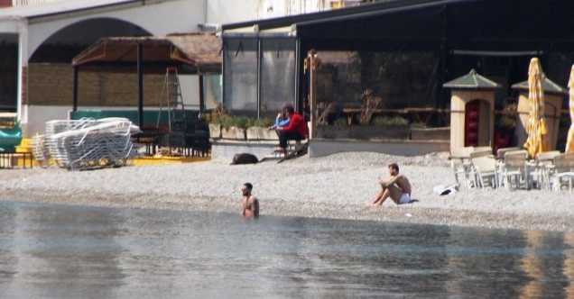 Tüm yurtta olduğu gibi Bodrum’da da sokağa çıkma kısıtlamasına vatandaşlar büyük ölçüde uydu. Bazı yerli ve yabancı turistler ise 23 derece hava sıcaklığını fırsat bilip bomboş sahillerde denize girerek sıcak havanın tadını çıkardı.