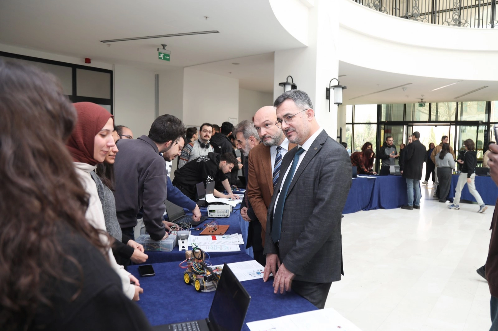 BTÜ Mühendislik ve Doğa Bilimleri Fakültesi Elektrik ve Elektronik Mühendisliği Bölümü öğrencilerinin projeleri, Mimar Sinan Yerleşkesi B Blok Fuaye alanında sergilendi. Elektrik Elektronik Mühendisliği 2’nci ve 3’ncü sınıf öğrencilerinin “Elektromanyetik Alanlar”, “Güç Elektroniği” ve “Elektrik Makinaları” derslerinde verilen proje ödevlerinin sergisine, BTÜ Rektörü Prof. Dr. Naci Çağlar da katıldı. Öğrencilerin projelerini tek tek inceleyen Rektör Naci Çağlar, “Burada sergilenen projeler öğrencilerimizin, mühendislik biliminin temellerini ne kadar sağlam bir şekilde kavradıklarını ve bu bilgileri pratikte nasıl kullanabildiklerini ortaya koyuyor. Elektrik ve elektronik mühendisliği gibi dinamik ve hızlı gelişen bir alanda, öğrencilerimizin bu projelerle gösterdikleri performans, üniversitemizin mühendislik eğitimindeki güçlü altyapısının bir yansımasıdır” dedi.