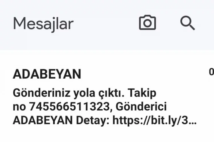 Milyonlarca cep telefonu kullanıcısına bu sabah saatlerinde bir alışveriş sitesinin de ismi ve uygulaması taklit edilerek "SMS ile gönderilen Adabeyan kargo gönderiniz yola çıktı, kargo takip '745566511323' numarası" şeklindeki mesaj tedirginliğe yol açtı.