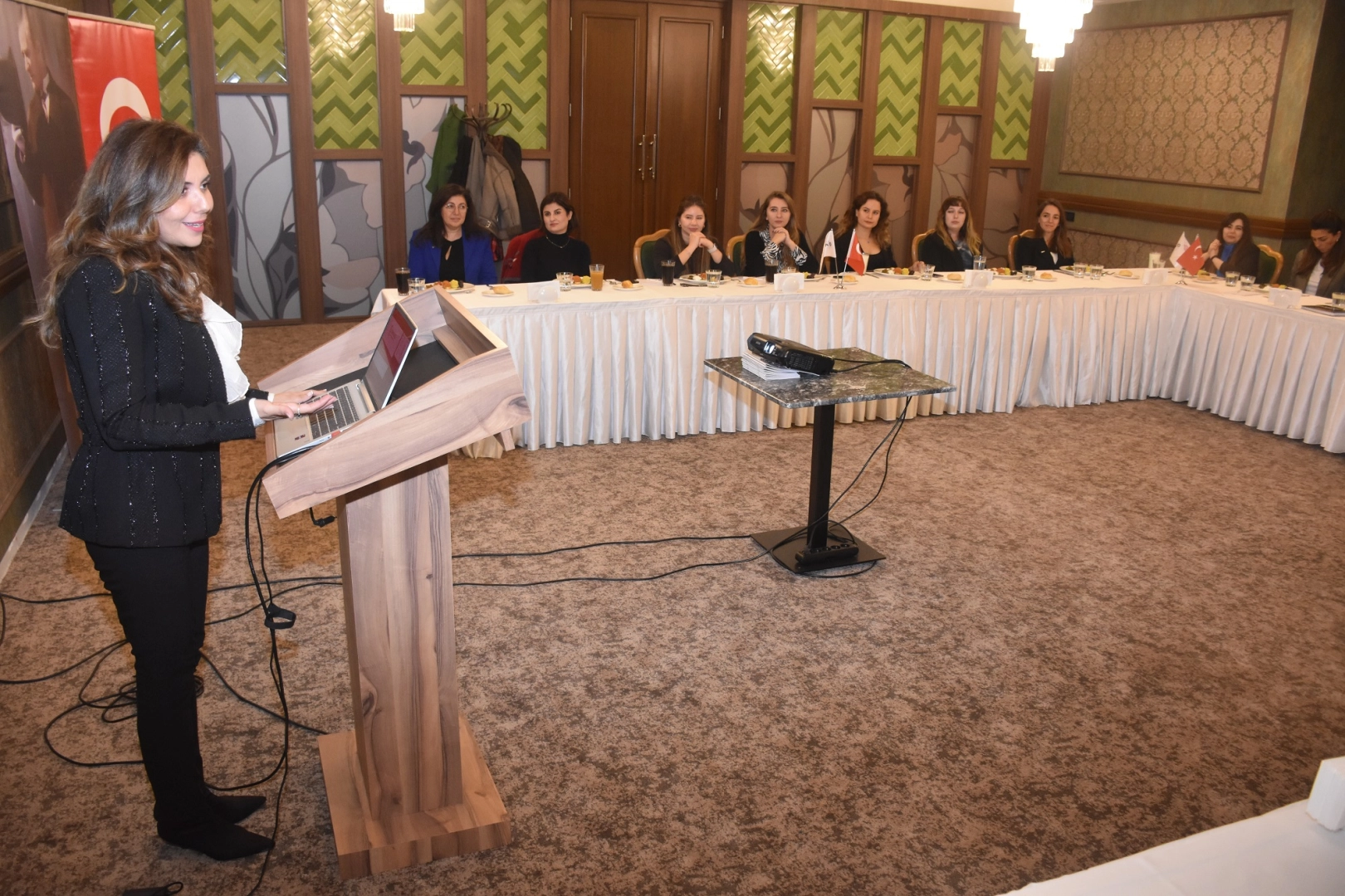 NOSAB’daki Gastro Sanayi’de gerçekleştirilen toplantıda BUMKAD’ın çalışma ve hedefleri hakkında bir sunum gerçekleştiren Yönetim Kurulu Başkanı Ülfet Öztürk, kadınların her alanda olduğu gibi mühendislik dalında da faaliyet ve etkilerini arttırmak için geliştirdikleri projeleri ve çalışmaları anlattı.