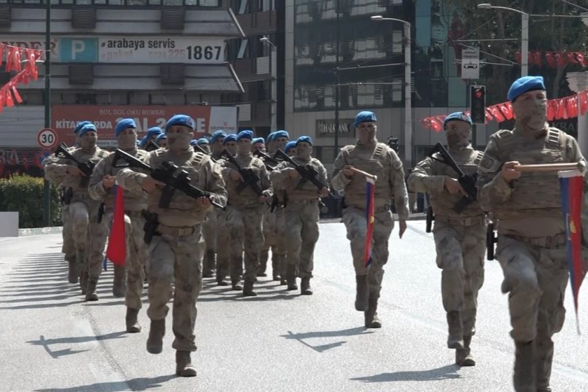 30 Ağustos Zafer Bayramı'nın 103'üncü yılı Bursa Valiliği'nin önünde coşkuyla kutlandı. Resmi geçit törenine akülü motoruyla katılan çocuk, geçiş sırasında dikkatleri üzerine çekti.