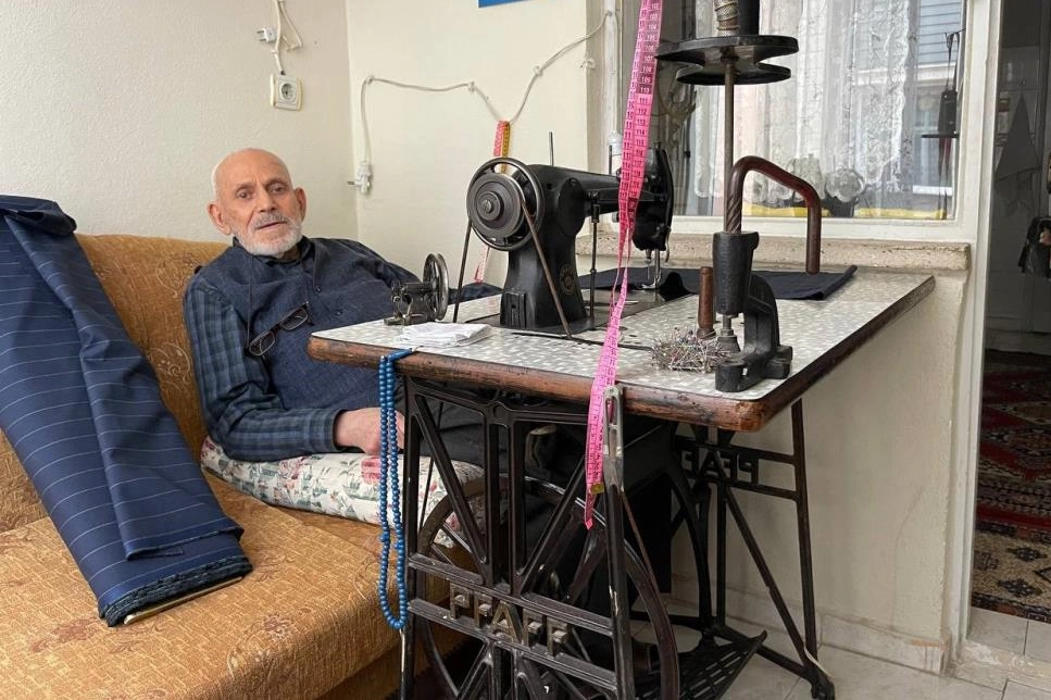 Bursa’nın Karacabey ilçesinde yaşayan terzi Feyzullah Çınay, 13 yaşında çırak olarak başladığı terzilik mesleğine ilk günkü heyecanıyla 70 yıldır ara vermeden devam ediyor. Yaklaşık 15 yıl önce kendi iş yerini kapatsa da kendisine talepte bulunan yakınlarını kıramayan Çınay, evinin balkonunu atölyeye çevirerek çalışmalarına devam ediyor. Kendisiyle yaşıt bir dikiş makinesi kullandığını söyleyen Çınay, makinesinin eski olmasına rağmen kendisi gibi hala güzel işler çıkardığını söylüyor.