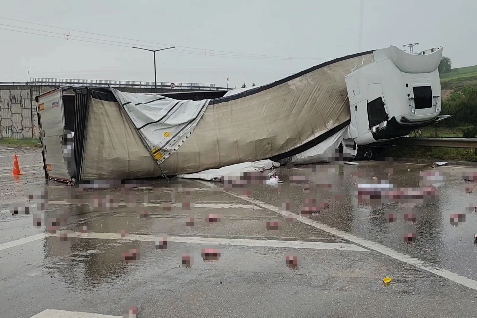 Kaza, saat 07.00 sıralarında Mustafakemalpaşa Terminal Kavşağı’nda meydana geldi. Bursa istikametine seyir halinde olan H.B idaresindeki tır, yağış etkisiyle kayganlaşan yolda sürücünün kontrolünden çıkarak önce bariyere çarptı ardından yola devrildi. Tırın dorsesinde bulunan çok sayıda alkol yola saçıldı. Tır şoförü kazadan yara almadan kurtulurken, trafik kısa süreliğine durma noktasına geldi. Ekiplerin müdahalesiyle yol bir süre sonra tek şeritten kontrollü olarak trafiğe açıldı. Olayla ilgili tahkikat başlatıldı.