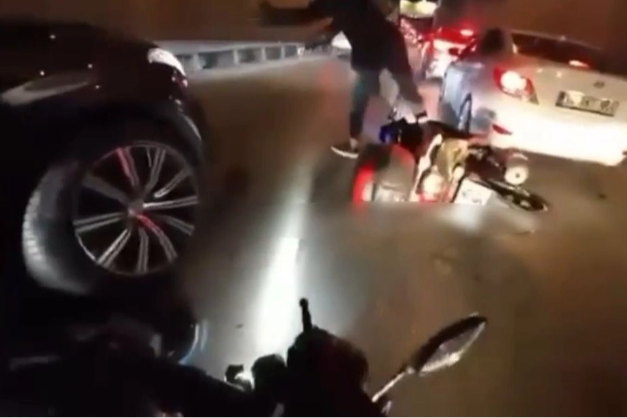 Ani frene basan sürücüye, arkadan gelen bir başka motosikletli çarptı. Kaza, merkez Osmangazi ilçesi, Merinos mevkii İzmir Yolu üzerinde meydana geldi. Motosikletiyle durağan trafikte araçların arasında hızla seyrederken iki otomobilin arasında sıkıştı. Aniden frene basan motosiklet sürücüsüne arkasından gelen bir başka motosikletli hızla çarptı. Kazanın etkisiyle iki sürücü yola savrulurken, araç sahipleri sürücülerin yardımına koştu. Şans eseri kaza hafif sıyrıklarla atlatıldı.