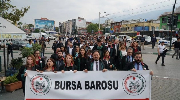 Basın açıklamasının ardından arkasında duran meslektaşlarına “Yürümeye var mısınız arkadaşlar” diye sorunca, avukatlar Kent Meydanı’na doğru yürüyüşe geçti. Polisin geniş güvenlik önlemi altında süren yürüyüş boyunca avukatlar “Savunma haktır, avukatlar vardır”, “Savunma susmaz, susturulamaz”, “Susma, sustukça sıra sana gelecek”, “Bursa korkma, avukatın yanında”, “Avukat burada adalet nerede” gibi sloganlar attı. Avukatlar, yürüyüşü Kent Meydanı’nda alkış ve sloganlarla sona erdirdi.
