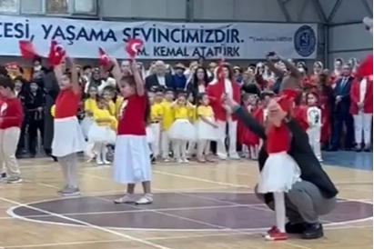 Kutlamalar sırasında sahneye çıkan küçük kız, performansı boyunca öğretmeninin desteğiyle yalnız bırakılmadı. Özel eğitim sınıfında okuyan minik öğrenci, arkadaşlarıyla birlikte hazırladığı gösteriyi sergilerken en büyük destekçisi öğretmeni oldu. Öğrencisinin elini bir an olsun bırakmayan İzzet Kaçmaz öğretmen, onunla birlikte sahnede yer aldı. Öğretmen ve öğrencisinin sevgi dolu anları, izleyen veliler ve diğer öğretmenler tarafından ayakta alkışlandı.