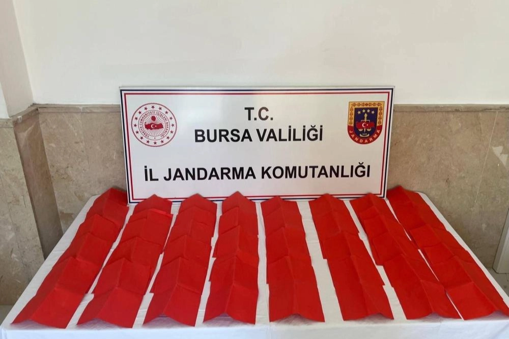 Bursa Cumhuriyet Başsavcılığı koordinesinde, İl Jandarma Komutanlığı’na bağlı Narkotik Şube Müdürlüğü ekipleri tarafından gerçekleştirilen operasyonda durdurulan şüpheli şahsın üst aramasında, paket içerisinde A4 kağıdına emdirilmiş halde 37 parça sentetik kannabinoid bulundu. Ele geçirilen maddenin toplamda yaklaşık 46 bin içimlik olduğu belirlendi. Gözaltına alınan şüpheli hakkında adli işlemler başlatılırken, olayla ilgili soruşturmanın sürdüğü öğrenildi. Bursa İl Jandarma Komutanlığı, uyuşturucu madde ticareti yapan şahıslara yönelik mücadelenin kararlılıkla devam edeceğini bildirdi.