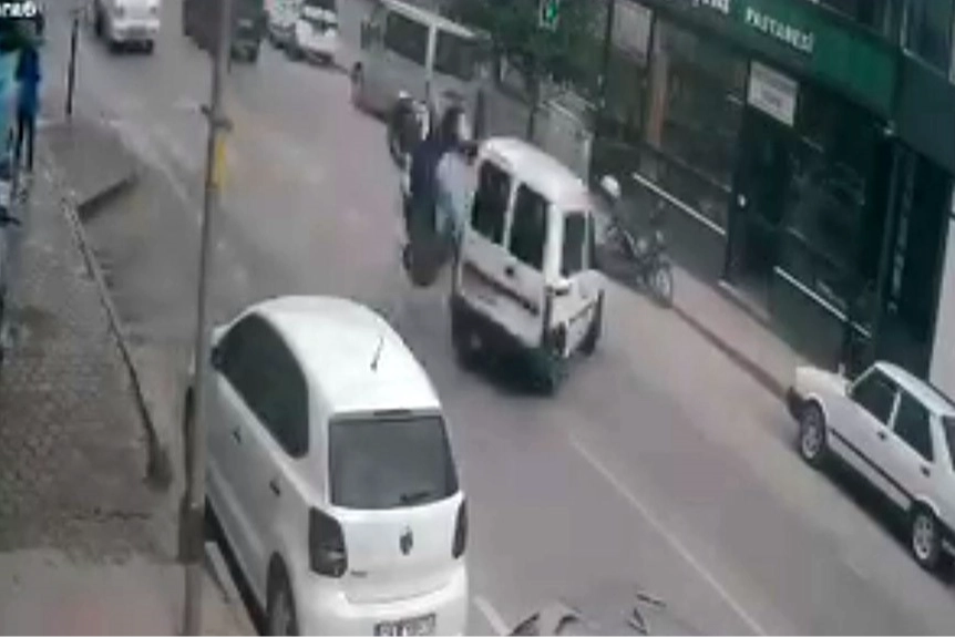 Kaza, sabah saat 09.13'te Hamidiye Mahallesi Anafartalar Caddesi'nde meydana geldi. Edinilen bilgiye göre, seyir halindeki A.E.G. (17) yönetimindeki 16 BHJ 941 plakalı motosiklet, park halindeyken caddeye çıkan sürücü Hikmet K. (47) idaresindeki 31 AKR 669 plakalı hafif ticari araç ile çarpıştı. Şiddetli çarpmanın etkisiyle devrilen motosikletten düşen sürücü yaralandı.