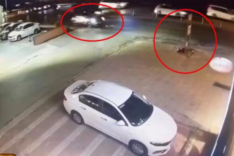 Kazada metrelerce savrulan motosiklet sürücüsü yaralanarak hastaneye kaldırıldı. O anlar ise güvenlik kamerasına saniye saniye yansıdı.