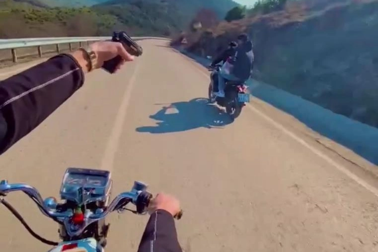 Bursa'da motosikletli gençler eğlencenin dozunu kaçırınca seyir halindeyken birbirlerine kurusıkı tabanca ile ateş ettiler. O anlar cep telefonu kamerasına yansıdı.