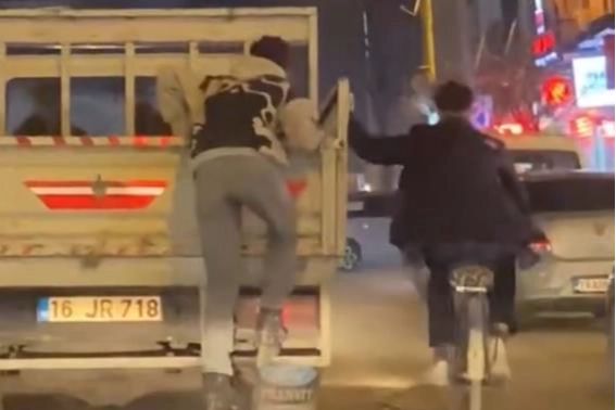 Olay, Yenice Mahallesi Nuri Doğrul Caddesi üzerinde meydana geldi. Edinilen bilgilere göre, patenli ve bisikletli iki genç, seyir halindeki bir kamyonetin arkasına tutunarak ilerlemeye başladı. Trafiği ve kendi can güvenliklerini hiçe sayan gençler, bir süre bu şekilde yolculuk etti. O anları gören bir vatandaş ise cep telefonu kamerasıyla tehlikeli yolculuğu kaydetti. Görüntülerde gençlerin zaman zaman dengesini kaybetme tehlikesi yaşadığı görülürken, çevredeki sürücüler de duruma tepki gösterdi.