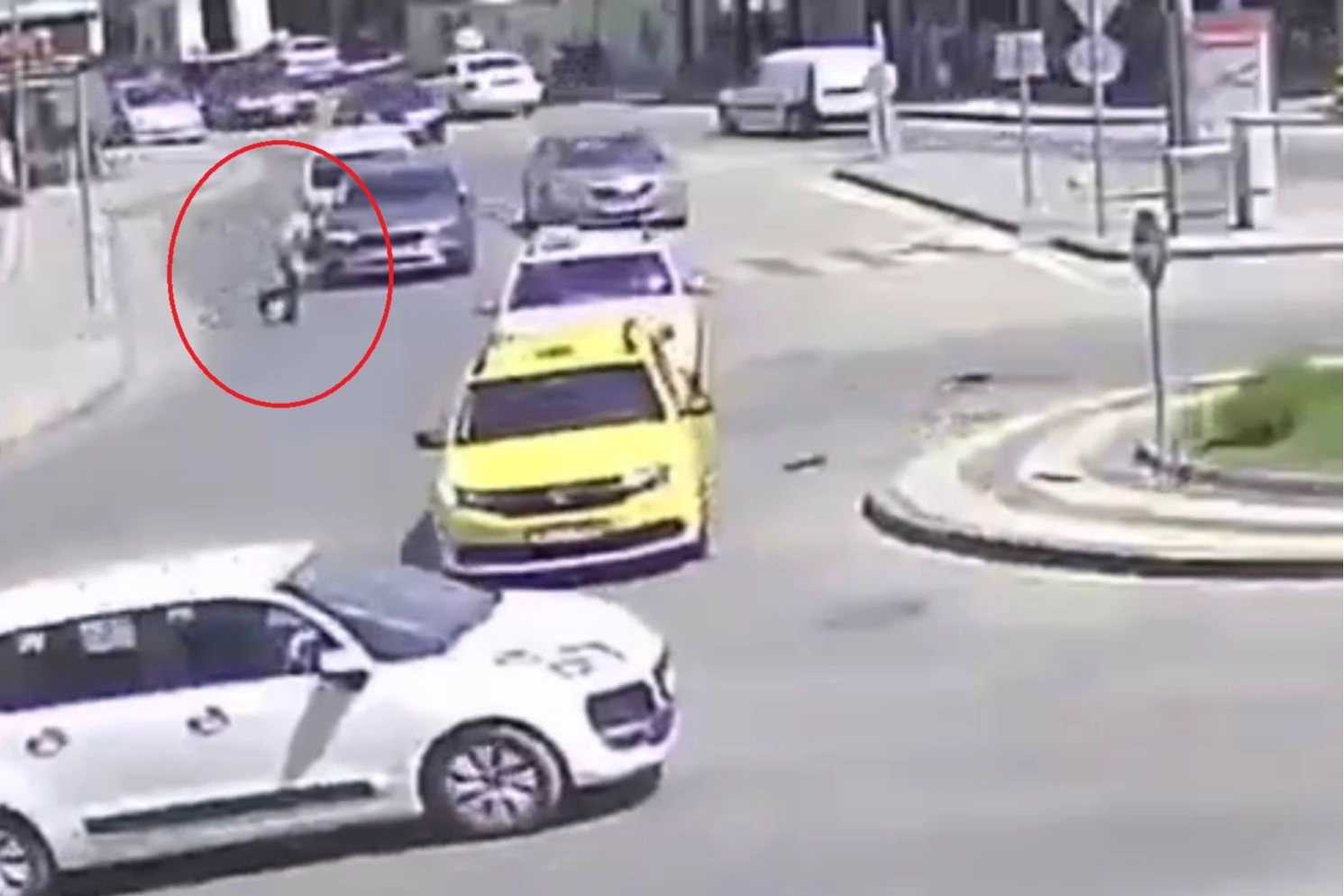 Olay, merkez Osmangazi ilçesi Çekirge Mahallesi'nde meydana geldi. Otobüs durağında bekleyen ve bir anda koşarak yola fırlayan vatandaş seyir halindeki otomobilin önüne çıktı. Sürücü frene bassa da çarpışma kaçınılmaz oldu. Çarpmanın etkisiyle yere savrulan şahıs korkulu anlar yaşatsa da kısa sürede kendisini toplayıp sanki hiç kazaya karışmamış gibi yoluna devam etti. Görenleri hayrete düşüren kaza anı çevredeki bir iş yerinin güvenlik kamerasına saniye saniye yansıdı. Kazayla ilgili soruşturma başlatılırken, vatandaşlara da yaya geçidi kullanma uyarısı yapıldı.