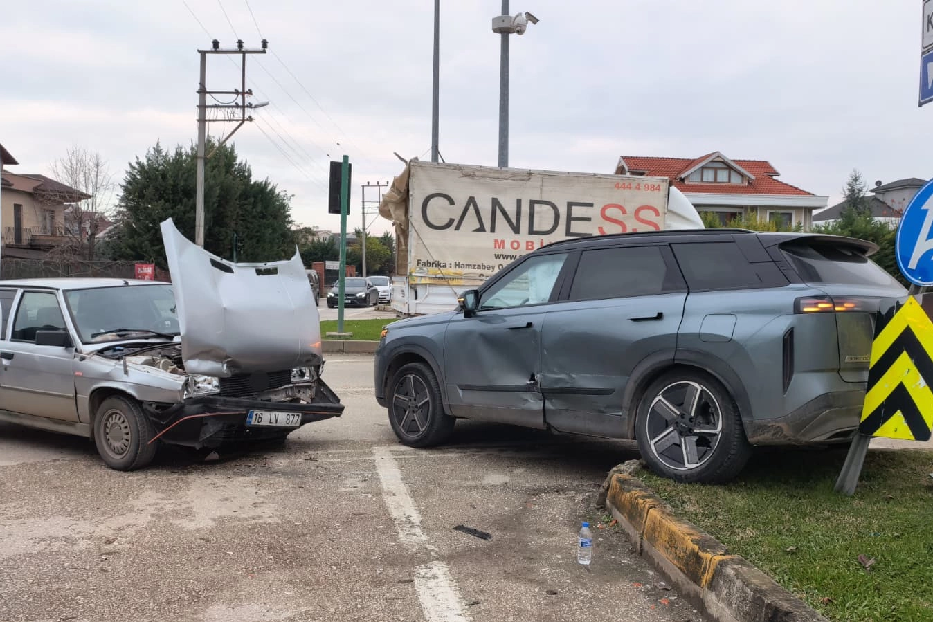 Kaza, saat 15.00 sıralarında Ahmet Türkel çevre yolu İsaören kavşağında meydana geldi. Hamidiye Mahallesi Park Caddesi'nden kavşağa giren Orhan Y. (37) yönetimindeki 16 LV 877 plakalı otomobil ile Ayşenur T. (33) yönetimindeki 16 PL 420 plakalı cip çarpıştı. Cip sürücüsü ile otomobildeki yolcu Veysel A. (72) yaralandı. Yaralılar kaza yerine sevk edilen ambulanslarla İnegöl Devlet Hastanesi'ne kaldırıldı. Polis kazayla ilgili inceleme başlattı.