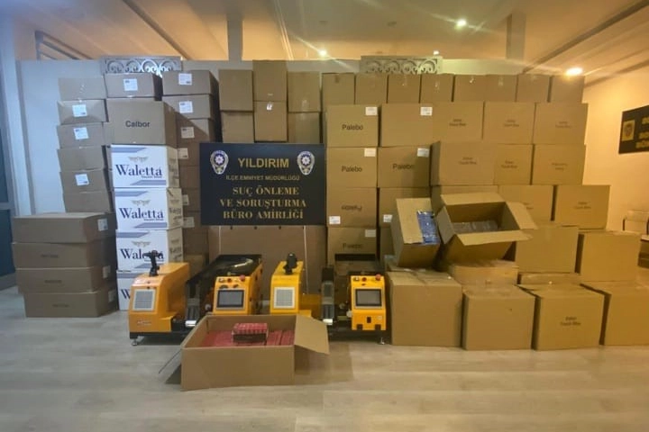 İl Emniyet Müdürlüğü Yıldırım İlçe Emniyet Müdürlüğü ekipleri, Yıldırım ilçesindeki bir adreste kaçak sigara imalatı yapıldığı bilgisi üzerine harekete geçti. Belirlenen adrese düzenlenen operasyonda 460 kilo 700 gram tütün, 60 bin 720 adet dolu makaron, 250 bin adet boş makaron ile 2 adet sigara dolum makinesi ele geçirildi. Operasyon kapsamında U.T.T. ve B.M. isimli şüpheliler hakkında kaçakçılıkla mücadele kanunu kapsamında adli işlem başlatıldı.