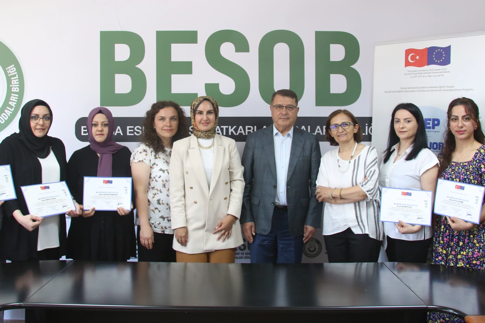 Yıldırım Belediye Başkan Yardımcısı Ayşe Ertan, İMEP 2 Program Koordinatörü Aişe Akpınar, Saha Koordinatörü Sezgin Akpınar, İMEP Bölge Koordinatörü Aydın Türkoğlu, Bursa Demir ve Madeni İşler Sanatkarları Esnaf Odası Başkanı İzzet Güven ve Gazaltı Kaynakçılığı "MİG- MAG" eğitimlerini başarıyla tamamlayan kadın kaynak ustaları BESOB’u ziyaret etti.