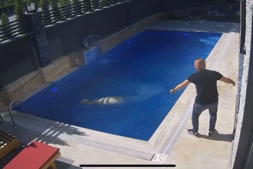 Olay, İnegöl'ün Kemalpaşa Mahallesi'nde meydana geldi. Samet Kasap, kurban için aldığı koçu kesmek için hazırlamaya başladı. O sırada kurtulan koç, kaçmaya başladı. Bir villanın bahçesine giren koç, havuza atlayarak yüzmeye başladı. Sedat Kasap, havuza atlayıp kısa süreli yüzdükten sonra havuz kenarına gelen koçu, eliyle dışarı çıkarıp yakaladı.