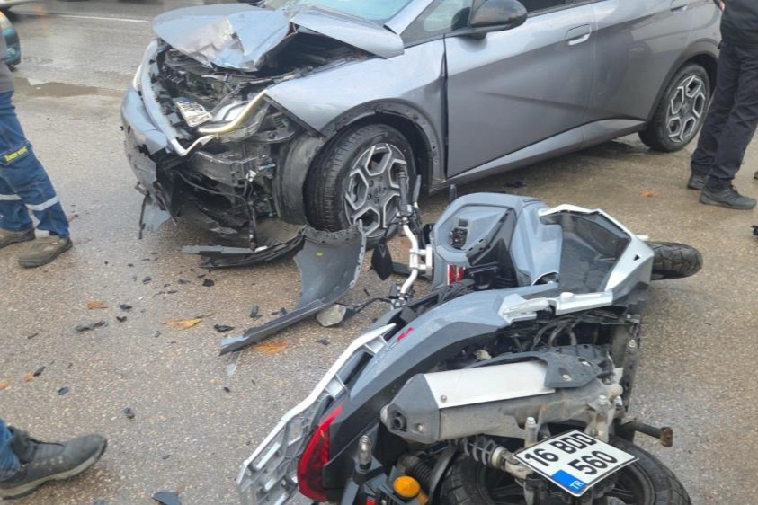 Kaza sabah 08.00 sıralarında Orhangazi’de Göl Yolu Caddesi üzerinde meydana geldi. Alınan bilgilere göre Göl yolu üzerindeki bir fabrikada çalışan ve sabah mesaiden çıkan Furkan V.(24) idaresindeki 16 BDD 560 plakalı motosiklet, Göl yolu üzerinde yavaşlayan trafikte emniyet şeridinde ilerlerken karşı yönden gelip yol üzerindeki bir iş yerine giriş yapmak isteyen Vahdettin A.(40) idaresindeki 16 BRP 445 plakalı otomobile çarptı.