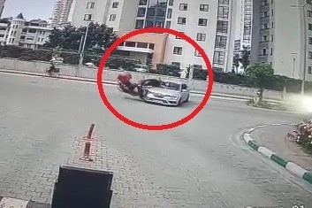 Kaza, merkez Osmangazi ilçesi Emek Mahallesi’nde meydana geldi. Güvenlik kamerasına yansıyan görüntülerde otomobil sürücüsü Turgut Özal Caddesi üzerinde başka araçların süratle geçmesine aldırmadan ters şeride girerek dönüş yapmaya çalıştı. Bu esnada cadde üzerinden Emek istikametine giden motosiklet sürücüsü önüne aniden çıkan otomobile çarptı. Çarpışmanın etsiyle otomobilin üzerine savrulan motosikleti kaskı sayesinde çok ciddi yaralanmazken, kaza anı güvenlik kamerasına saniye saniye yansıdı.
