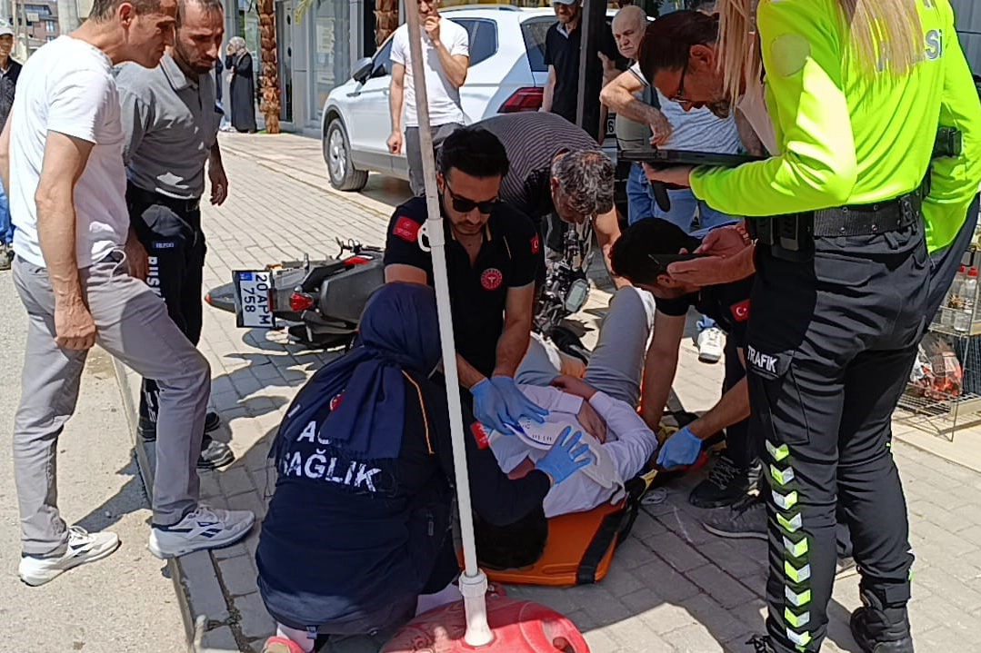Kaza saat 11.00 sıralarında Mesudiye Mahallesi İnegöl Caddesi üzerinde meydana geldi. Cadde üzerinde seyir halinde olan Sürücü Mehmet Efe A.(17) yönetimindeki 20 APM 758 plakalı motosiklet, aynı yöne giderken yol kenarına park etmek için manevra yapan sürücü Adem G.(50) yönetimindeki 16 PC 855 plakalı otomobil ile çarpıştı. Çarpışmanın etkisiyle devrilen motosikletten düşen sürücü yaralandı. Yardıma koşan vatandaşlar, yaralıyı güneşten korumak için bakkalın şemsiyesini kullandılar. Yaralı kaza yerine sevk edilen Ambulansla İnegöl Devlet Hastanesine kaldırıldı. Kaza anı bir işyerinin güvenlik kamerasına saniye saniye yansıdı. Polis kazayla ilgili soruşturma başlattı.