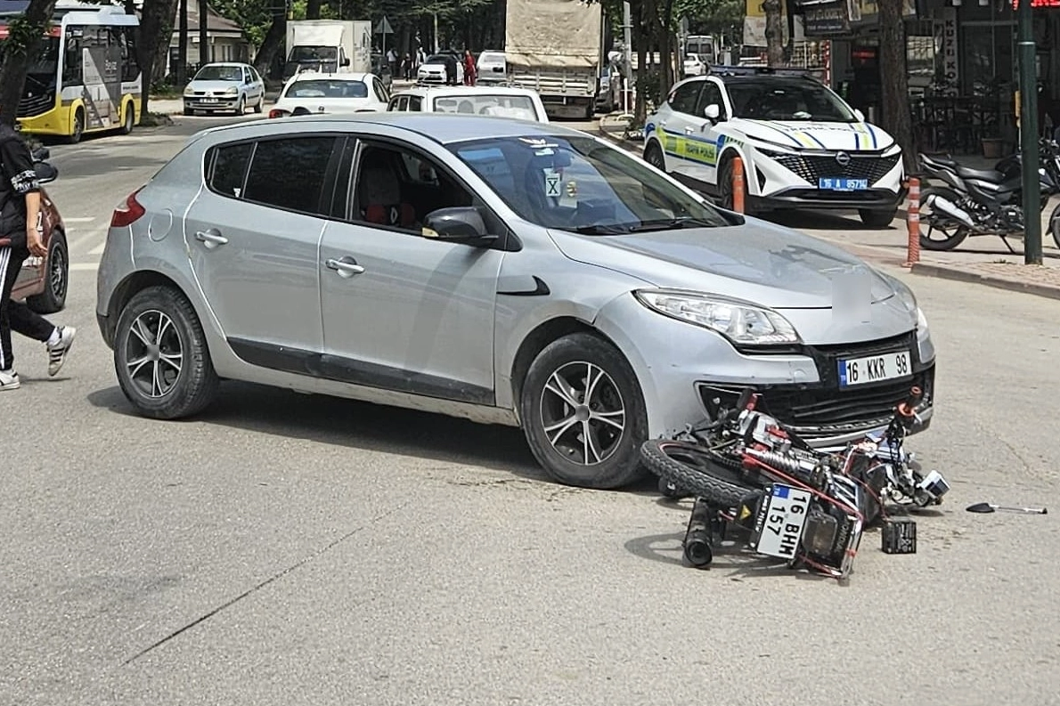 Kaza, saat 13.00 sıralarında Hamidiye Mahallesi Park Caddesi üzerinde meydana geldi. Ömer P. (17) yönetimindeki 16 BHM 157 plakalı motosiklet, seyir halindeyken karşı yönden sokağa dönüş yapan Abdülcebbar E. (26) yönetimindeki 16 KKR 98 plakalı otomobille çarpıştı. Çarpışmanın etkisiyle devrilen motosikletten düşen sürücü yaralandı. Yaralı, kaza yerine sevk edilen ambulansla İnegöl Devlet Hastanesine kaldırıldı. Polis, kazayla ilgili inceleme başlattı