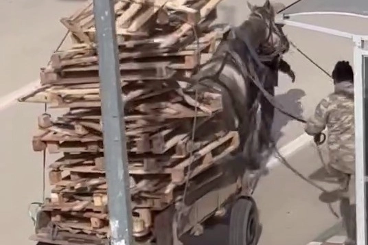 Bursa’nın Karacabey ilçesinde kimliği henüz öğrenilemeyen bir kişi, at arabasına kat kat palet yükledi. Aşırı yük nedeniyle yükün ağırlığı altında güçlükle ilerleyen atın dengesini sağlamakta zorlandığı anlar, çevrede bulunan bir vatandaş tarafından cep telefonu kamerasıyla kaydedildi. Sosyal medyada paylaşılan görüntüler kısa sürede çok sayıda kullanıcı tarafından paylaşılarak tepki topladı.