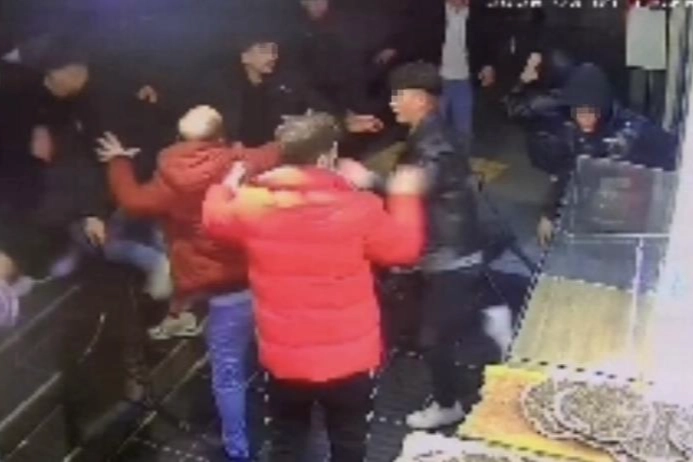 Bursa'nın Osmangazi ilçesi Çarşamba Mahallesinde bir grup genç ile esnaf tartışmaya başladı. Tartışmanın kısa sürede büyümesiyle öfkeli taraflar bir anda birbirine vurmaya başladı. Kavgaya taraflarında girmesiyle sandalye ve masalar havada uçuşurken, saldırganların biri kavgayı bahane edip tezgahtaki ürünleri çaldı. 2 kişinin hafif yaralandığı kavga anı kameraya yansırken, polis ekiplerinin gelmesiyle kavga son buldu.
