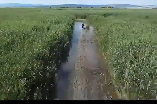 Dronu takip eden O.I, sazlıklardan bu şekilde kurtulmayı başardı.