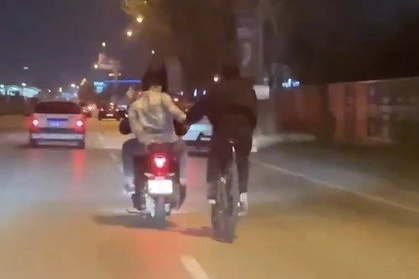 Olay, Sanayi Caddesi üzerinde meydana geldi. Edinilen bilgiye göre, trafikte seyreden motosiklet sürücüsü yolda gördüğü bisiklet sürücüsünün elinden tuttu. Beraber seyretmeye başlayan motosiklet ve bisiklet sürücüsünün tehlikeli yolculuğu amatör kameraya yansıdı