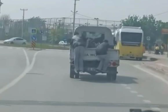 Olay, Gürsu ilçesinde meydana geldi. Canlarını hiçe sayan 2 genç, kasalı kamyonetin arkasına tutunarak ilerlemeye başladı. O anları gören diğer sürücüler, kamyonet sürücüsünü korna ile uyarsa da sonuç alamadı. Çocukların tehlikeli oyunu, saniye saniye amatör kamera ile kaydedildi.