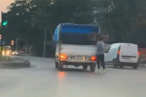 Olay, merkez Nilüfer ilçesinde meydana geldi. Patenle seyahat eden bir genç, önünde seyir halinde olan kamyonetin arkasına tutunarak ilerlemeye başladı. Tehlikeli anlar saniye saniye amatör kameraya yansırken, genç ise ışıkta bekleyen kamyonetin ilerlemesini de bekledi. Yeşil ışıkta ilerleyen kamyonete tekrar tutunarak seyahat eden gencin tehlikeli anları, amatör kameraya yansıdı.