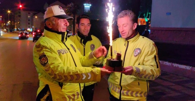 Bir araç sürücüsü Burak Oynalı, Emniyet Genel Müdürlüğünün kuruluşunun 178'inci yıl dönümü ve "Polis Haftası" kapsamında İnegöl'de uygulama yapan polis ekiplerine sürpriz yapmak istedi. Pasta alan sürücü, Cuma Mahallesi, Nuri Doğrul Caddesi üzerinde uygulama yapan trafik ekiplerine yöneldi. Sürücü, polis ekiplerince uygulama noktasında durduruldu. Sürücü, kendisini durduran polis ekiplerine pastalı sürpriz yaptı. Şaşıran polis ekipleri, pasta üzerindeki mumları söndürüp teşekkür ettiler. Sürücü Burak Oynalı, polis ekiplerinin bu özel gününü kutladı.