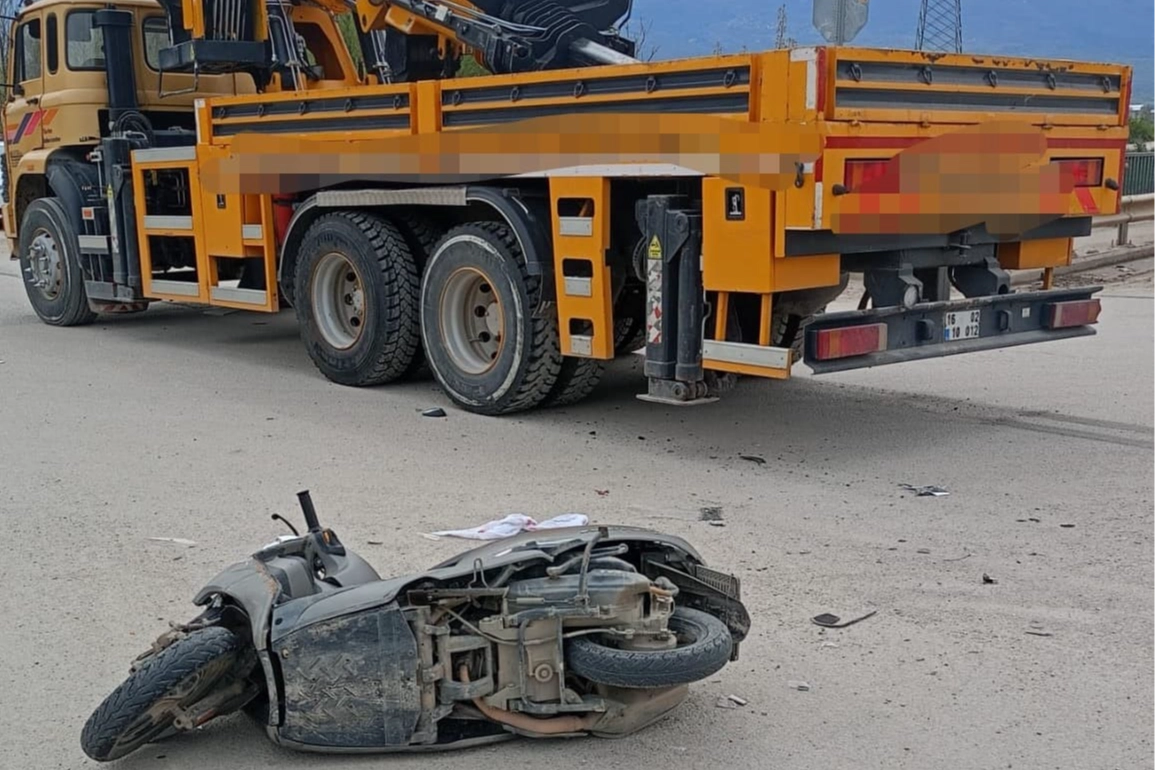 Kaza Cumhuriyet mahallesi Mareşal Fevzi Çakmak Caddesi üzerinde meydana geldi. Sürücü Sercan D.(25) yönetimindeki vinç ile sürücü Mehmet T. (34) yönetimindeki 16 BEK plakalı motosiklet çarpıştı. Çarpışmanın etkisiyle devrilen motosikletten düşen sürücü yaralandı. Yaralı kaza yerine sevk edilen Ambulansla İnegöl Devlet Hastanesine kaldırıldı. Polis kazayla ilgili soruşturma başlattı.