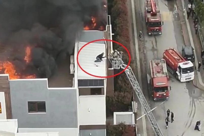 Öte yandan korku dolu anlar dron ile havadan görüntülendi. Görüntülerde çatı katını saran alevler ve gökyüzünü kaplayan yoğun duman dikkat çekti.