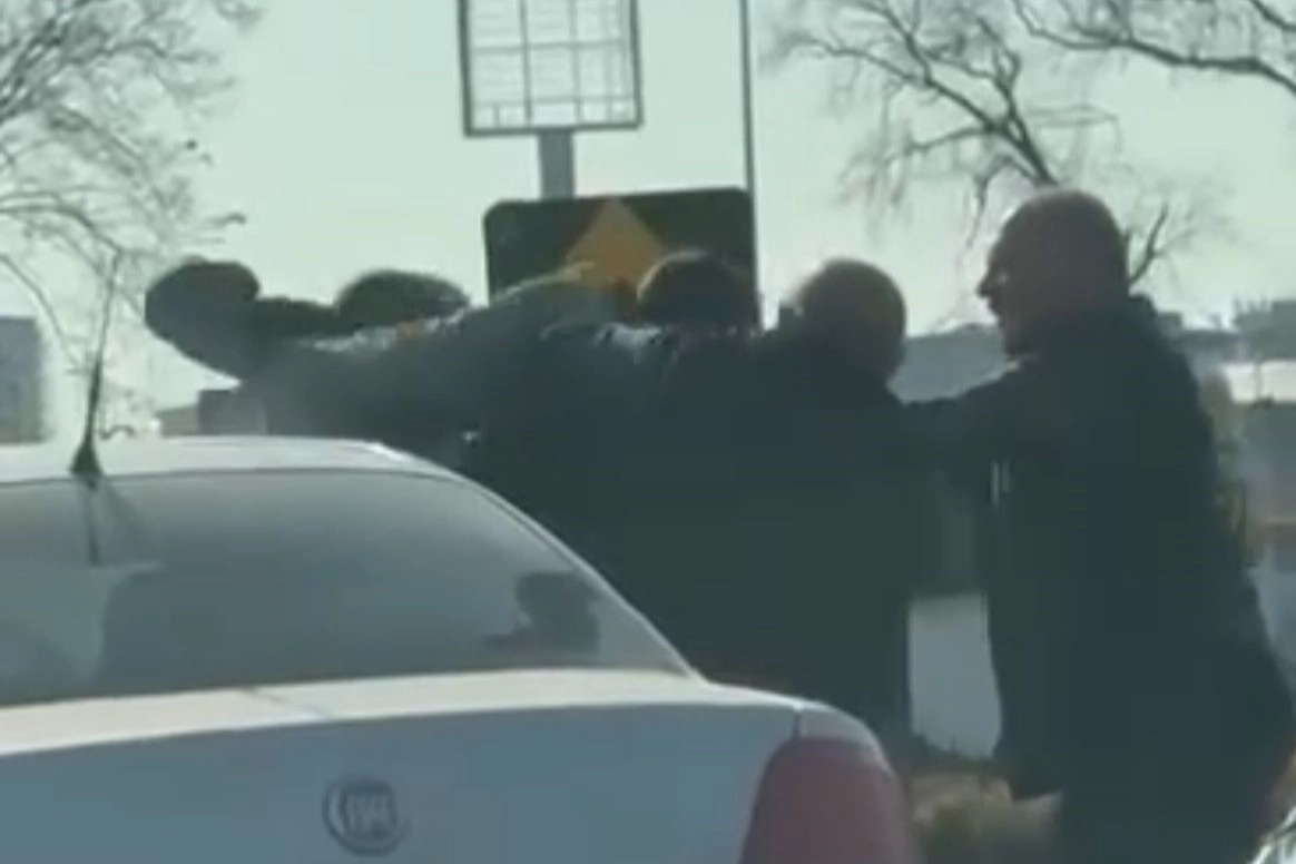 Olay merkez Osmangazi ilçesi İzmir Yolu caddesi Acemler mevkiinde meydana geldi. İddiaya göre, yoğun trafikte ilerlemeye çalışan iki sürücü yol verme meselesi nedeniyle sözlü tartışmaya başladı. Kısa sürede büyüyen tartışma kavga dönünce, öfkeli taraflar araçlarından inip bir birlerine tekme tokat vurmaya başladı. Öfkeli tarafların caddeyi ringe çevirdiği anlar kameraya yansırken, tarafları çevredekiler ayırdı.