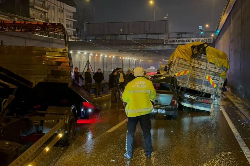 Kaza, dün saat 21.00 sıralarında Yıldırım ilçesi Ankara Yolu Caddesi Mimar Sinan Alt Geçidi'nde meydana geldi. Edinilen bilgiye göre, yağış sebebiyle kayganlaşan yolda bir kamyon ile üç otomobil zincirleme kazaya karıştı. Otomobillerden biri, kamyonun altına girerek durabildi. Kazayı gören vatandaşlar durumu 112 Acil Servis Merkezi'ne bildirdi. İhbar üzerine olay yerine çok sayıda polis, sağlık ve itfaiye ekibi sevk edildi. Olay yerine gelen sağlık ekipleri, kamyonun altına giren 16 BFZ 159 plakalı otomobilde bulunan yolcu Erol Erden'in (50) hayatını kaybettiğini belirledi. Kazada 16 BFZ 159 plakalı otomobil sürücüsü Cenk D., 16 NOM 98 plakalı otomobilde bulunan Dilara ve Fidan Ş. ile 16 BHK 349 plakalı otomobilde bulunan ve ismi henüz öğrenilemeyen 1 kişi yaralandı. Yaralılar, olay yerinde yapılan ilk müdahalenin ardından çevre hastanelere kaldırılarak tedavi altına alındı. Yaralılardan Cenk D.'nin durumunun ağır olduğu öğrenildi. Sürücü 1.97 promil alkollü çıktı Öte yandan, kaza anının cadde üzerindeki güvenlik kamera görüntüsü ortaya çıktı. Görüntülerde Cenk D.'nin otomobiliyle makas atarak girdiği alt geçitte yağış sebebiyle kaygan yolda önce 16 NOM 98 plakalı otomobile yandan çarptığı, ardından savrularak kamyonetin altına girdiği görüldü. Hastanede tedavisi devam eden Cenk D.'nin 1.97 promil alkollü olduğu belirlendi.