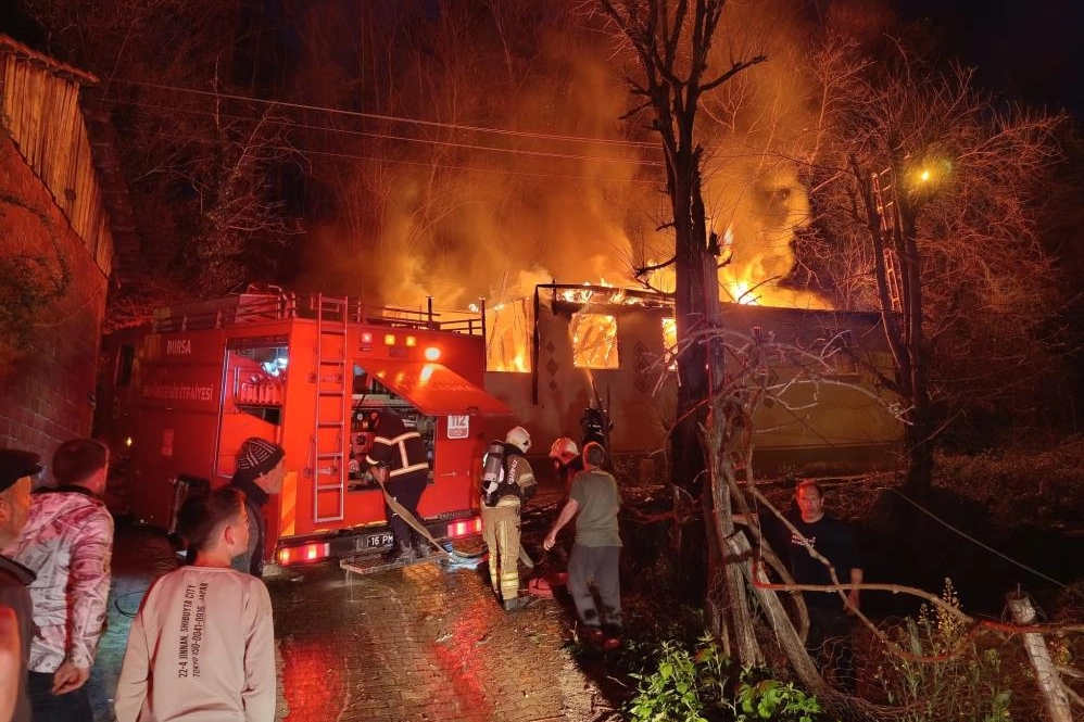 Bursa İnegöl'de tek katlı ev alev alev yandı