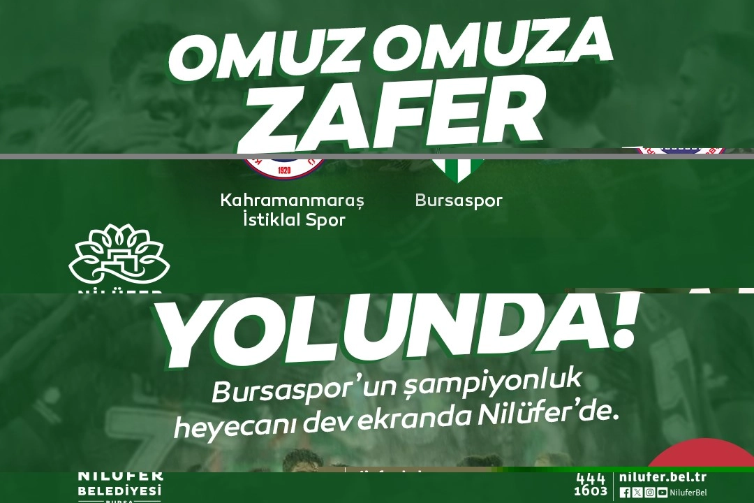 Nilüfer Belediye Başkanı Şadi Özdemir, şampiyonluk mücadelesi veren yeşil beyazlı takımın taraftarlarını maç heyecanını birlikte paylaşmaya davet etti. TFF 2. Lig’de şampiyonluk yolunda emin adımlarla ilerleyen Bursaspor, ligin 28. haftasında 14 Mart 2026 Cumartesi günü 13.30’da deplasmanda Akedaş Kahramanmaraş İstiklal Spor ile karşı karşıya gelecek. Nilüfer Belediyesi, Bursaspor taraftarlarının bu önemli maçta takımlarını yalnız bırakmaması için Üç Fidan Gençlik Parkı’nda dev ekran kuracak. Sandalyesini alıp gelen yeşil beyazlı taraftarlar, bu coşkuyu birlikte yaşayacak.